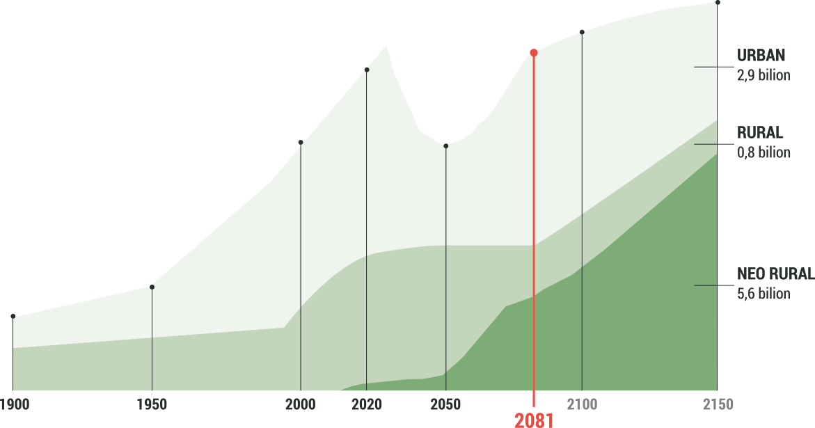Total urban, rural and neorural population, with estimates to 2078 and UN projections to 2150. Projections are based on the UN World Urbanization Prospects and related median fertility scenario.